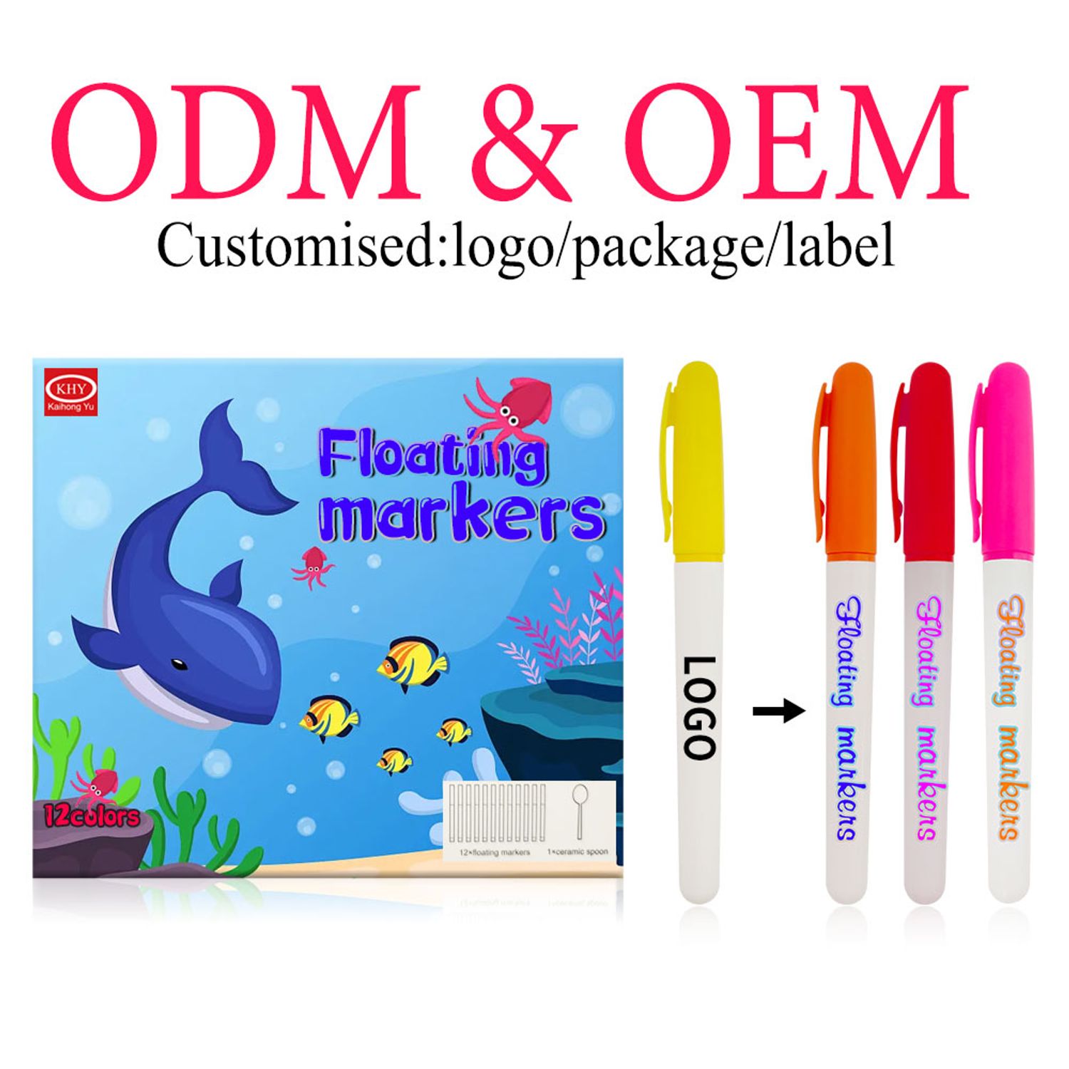 Magische schwimmende Markierungsstifte mit einem Keramiklöffel. Wassermalerei